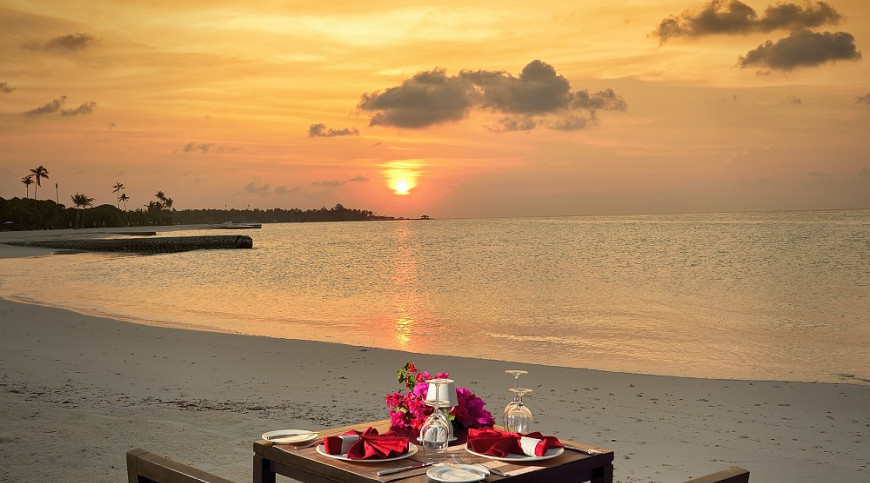 Some of the largest entry level beach-front villas in the Maldives. Elegantly designed with guest comfort in mind; high ceilings & open air bathrooms. The sunset beach villas are nestled along the long stretch of beach with each individual villa having direct beach access just few meters in front of their large open air veranda. Ideal for honeymoon couples.