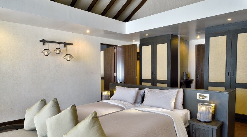 Occupying some of the best beach front locations on the island, these spacious & luxurious suites cover a span of 132 m² just a few feet from the beach line. With outdoor areas and an open air veranda overlooking the beach, with comfortable beach loungers & spacious exteriors. Each individual suite comes with direct beach access, boasting some of the best sunset views at dusk. The Junior Suites showcase natural wood and stone flooring, open-air bathrooms & private outdoor areas. The bathrooms are fitted with a whirlpool bath tub.