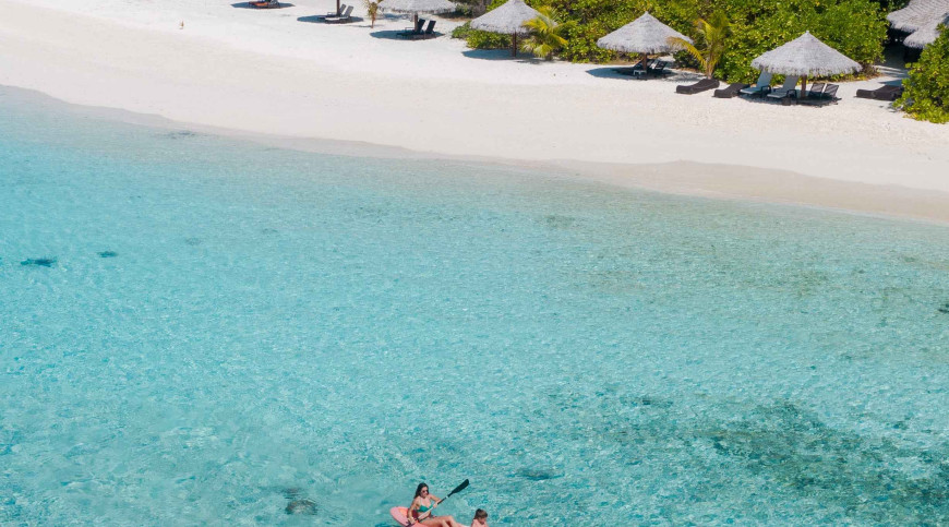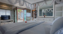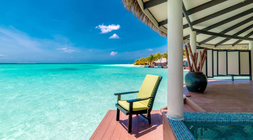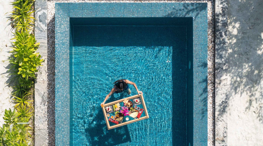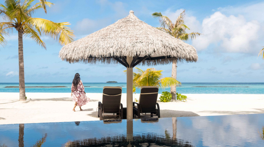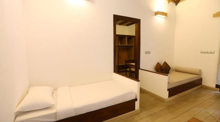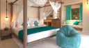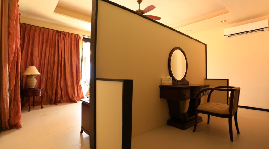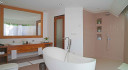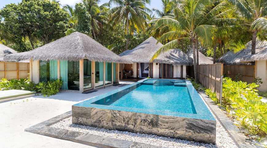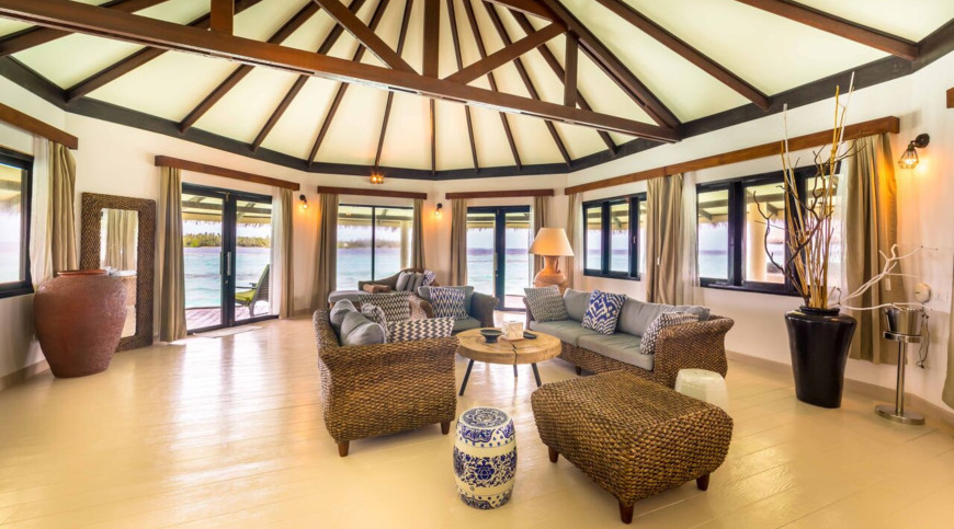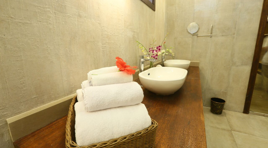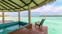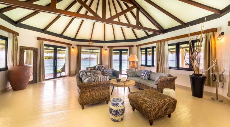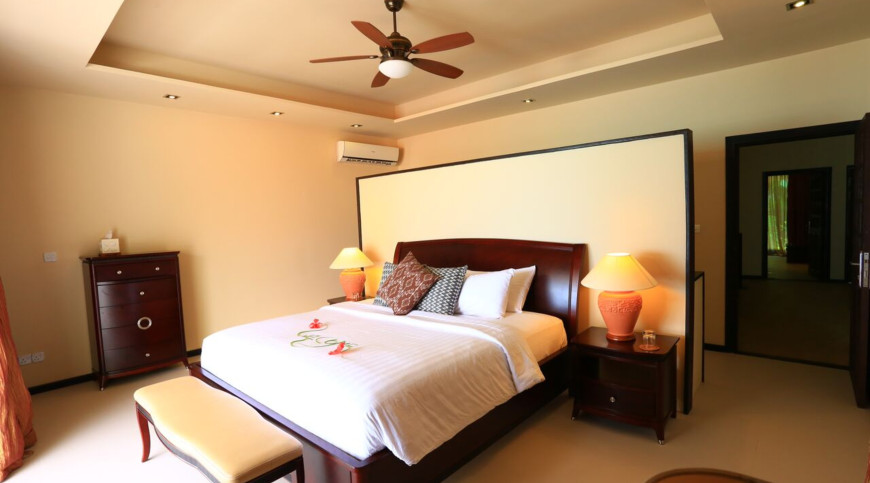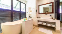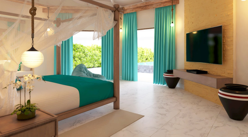 Spacious and comfortable, this villa features a quiet position among vegetation, even though offering a direct view of the ocean. It is characterized by a spacious bedroom with a comfortable king bed and a day bed sofa, a bathroom with outdoor rain shower, separate shower and bath tub, and a private garden area with wooden patio equipped with beach chairs with direct access to beach.