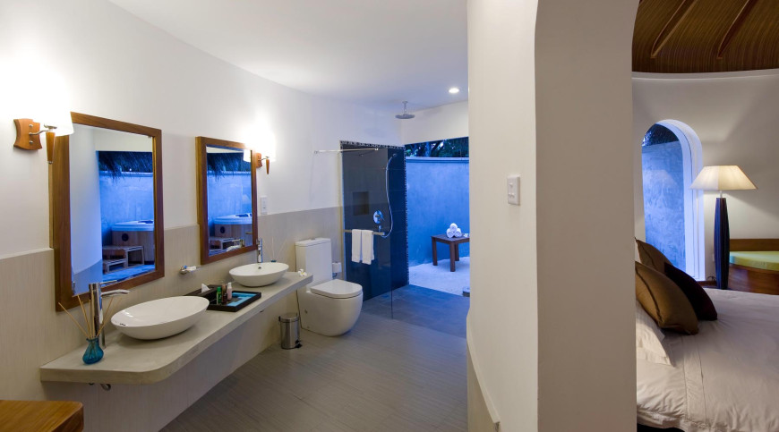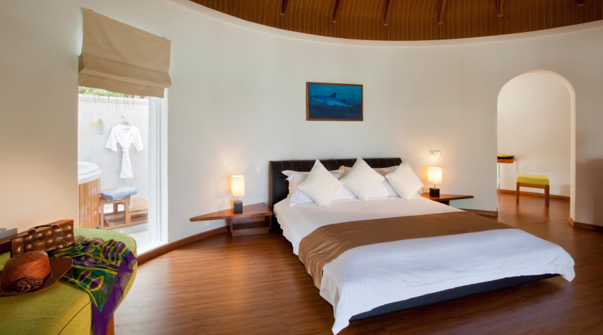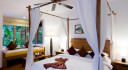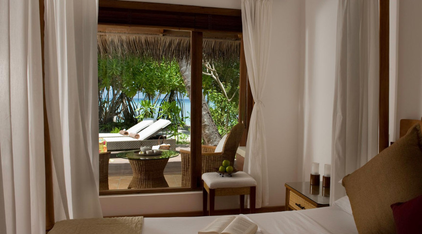Individual villas, hidden within the luxuriant vegetation, yet only a few steps from the beach. The Beach Villas are individual villas hidden within the abundant vegetation, yet only a few steps away from the beach. These villas face the lagoon side of the island and feature king-sized four-poster beds, wooden decks at the front with daybed and sun loungers. The Beach Villas also include semi-open air bathrooms with outdoor rainfall shower.