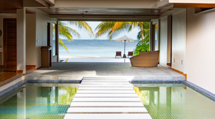 Daybreak. Early morning light sifts through the curtains. Inside, the air is still, hushed. Subdued. Beyond the window, a sensual garden of light, sand and sea beckons; lifts you from the sensuous embrace of your king bed. Those first morning rays bathe the terrace, scattering across the surface of the lagoon.