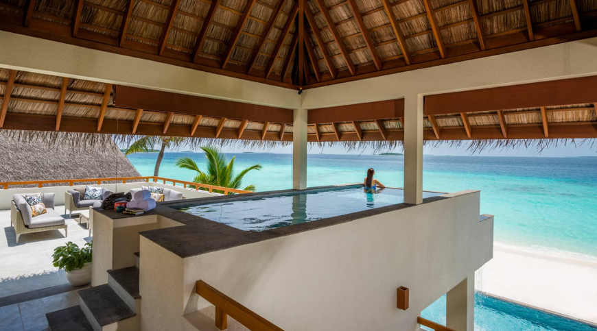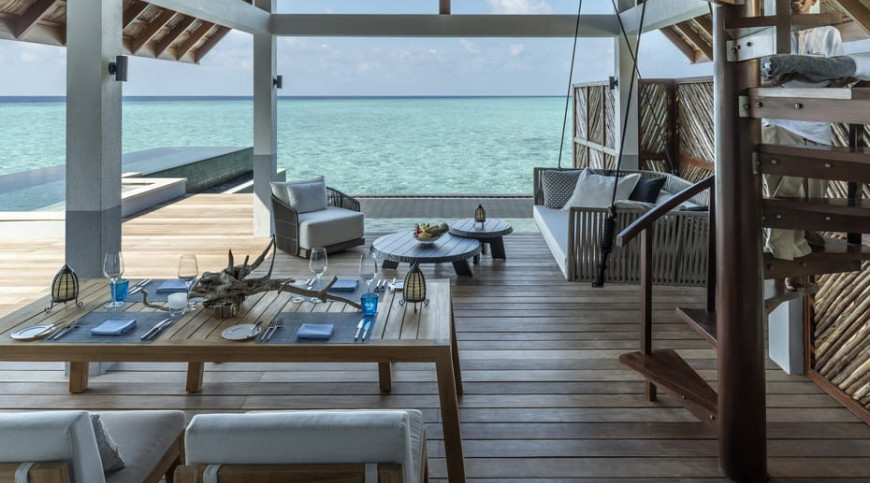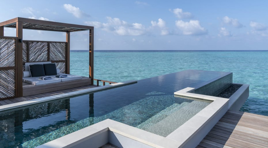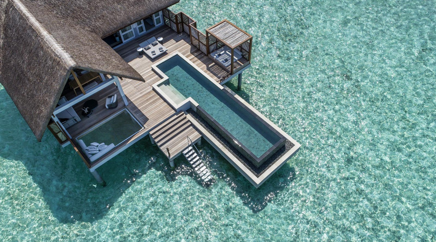 Wake to inspiring sunrises from these overwater villas, where early-morning dips in your private infinity pool come with sweeping views of the Indian Ocean.