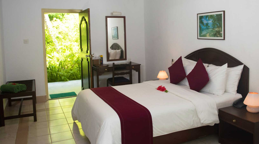 Beach front rooms with double or single, Fresh hot and cold water ,Minibar, tea/coffee maker, Hair dryer and laundry service, Sitting area, writing desk & IDD telephone, Air-conditioning Private terrace with outdoor seating.