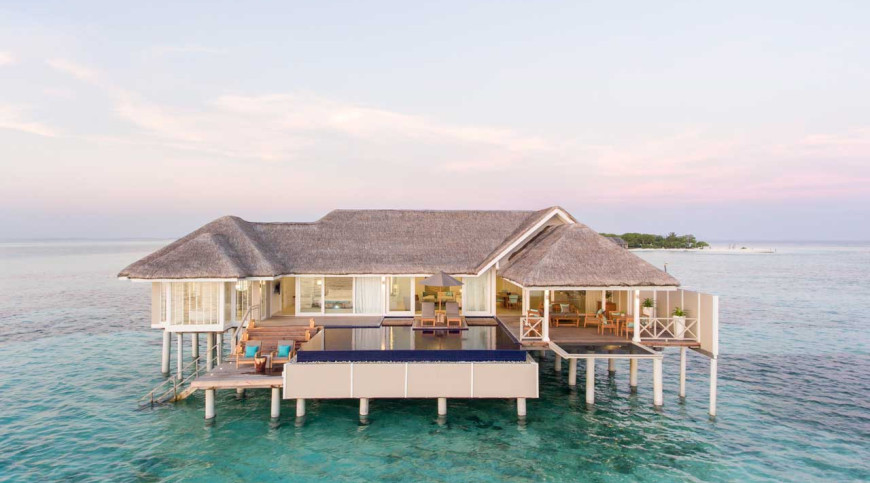 This beautiful luxury Maldives hotel, located on South Ari Atoll in a Marine Protected Area and a mere 20-minute plane ride from the airport of Male, offers one of the most unique stays.