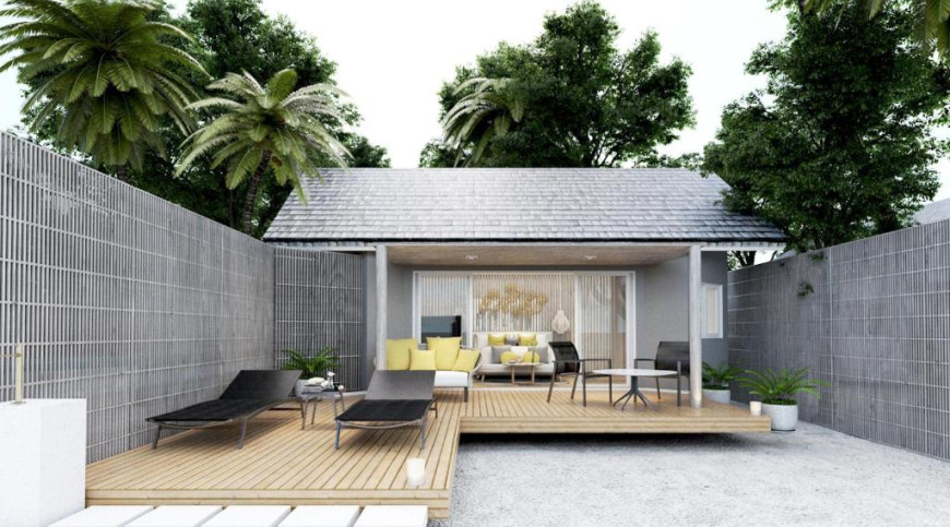 These are surrounded by abundant vegetation and located right beside the beach, with sun loungers on a private deck facing the sea. The bathroom is semi-open air with shower whilst the outdoor garden area has a rainfall shower made of stone.
