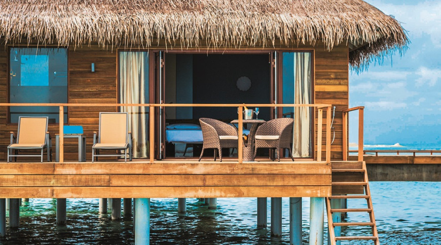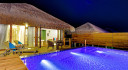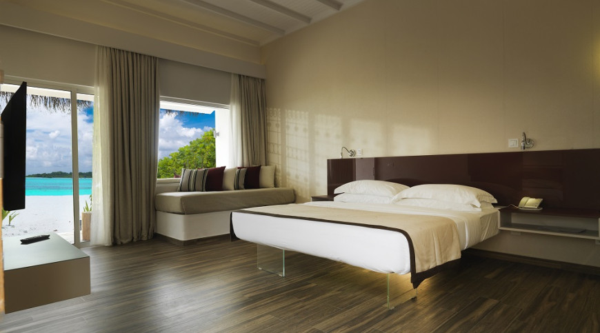 One of the best resort in Maldives, the 50 Beach Villas offer exclusive accommodation with stylish settings and elegant Italian design. Cocoon’s spacious, 50-square meter Beach Villas, blend the Maldives’ natural beauty with the best of Italian design. Open plan, yet intimate, each villa includes a feature bathing area with a large tub, a master bedroom with ‘floating’ king-sized bed, and a sunken living area with sofa, flat screen TV and personal bar