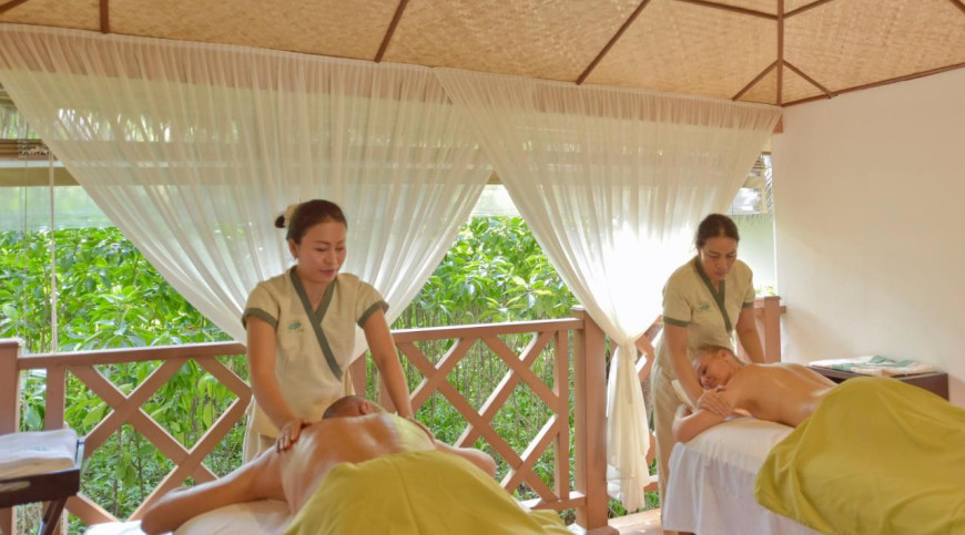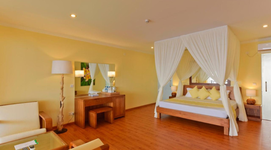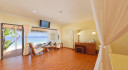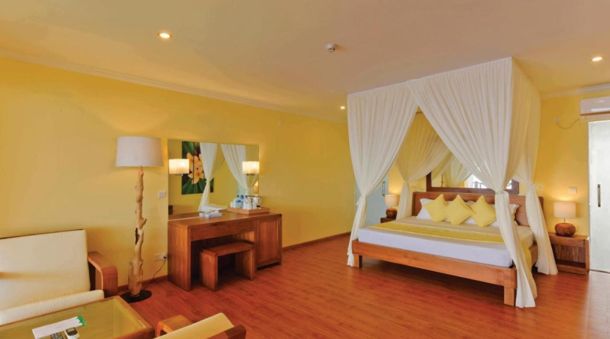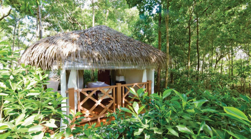 Beach Bungalow by the shore opens up to sandy stretches. Enjoy the echoes of the ocean breaks, the ocean breeze rustling palm trees and the songs of the birds as they flitter through the island foliage. Stroll barfoot on the powder soft white sands, immersing yourself in world of simplicity and island rhythms.
