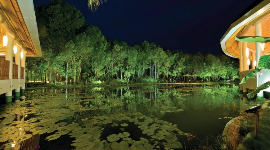 This picturesque lake is surrounded by 20 m high mangrove trees on one side and 20 m high palm trees on the other side.