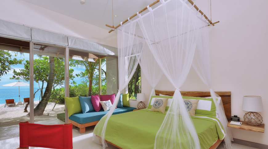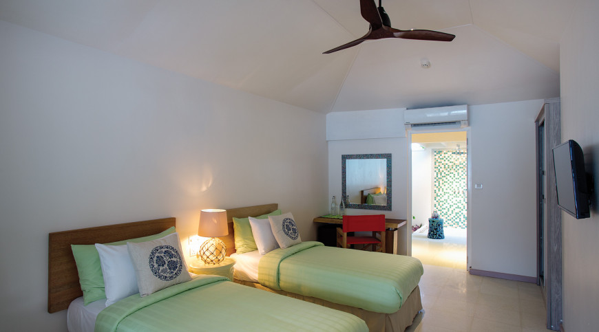 Elegant and comfortable villas offering direct beach access and the lagoon beyond, with fresh tropical color schemes and comfortable textiles. Together with a relaxing aura – offers comfortable interiors and a classic Maldivian touch!