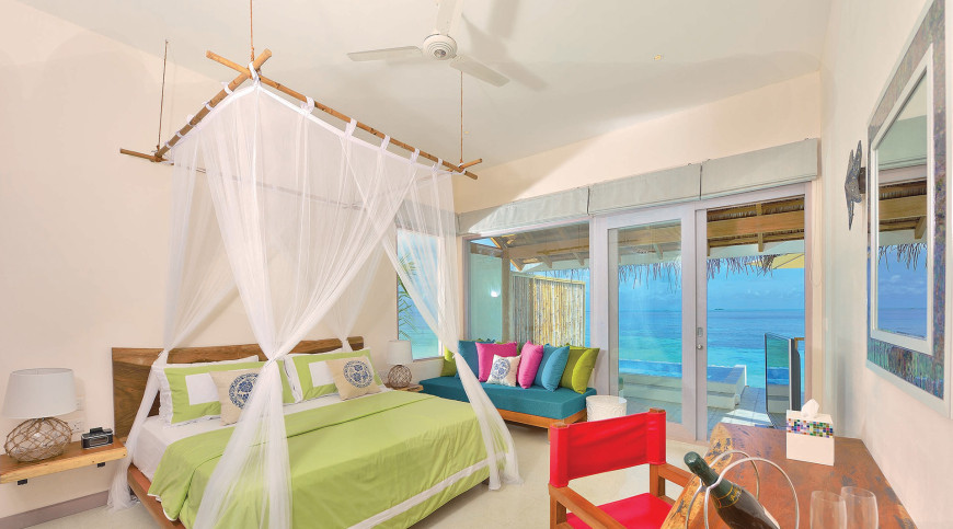 The Four-Star Superior resort, offers guests a unique all-encompassing holiday plan ‘The Island Plan’, showcasing 116 villas with vibrant, trendy and colorful interiors fused with tropical Maldivian designs,without affecting the natural aesthetics of the lush green island itself.