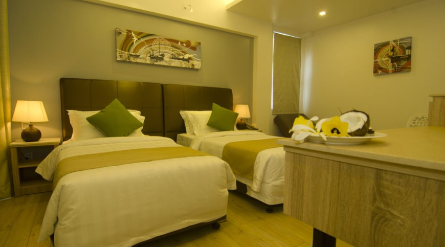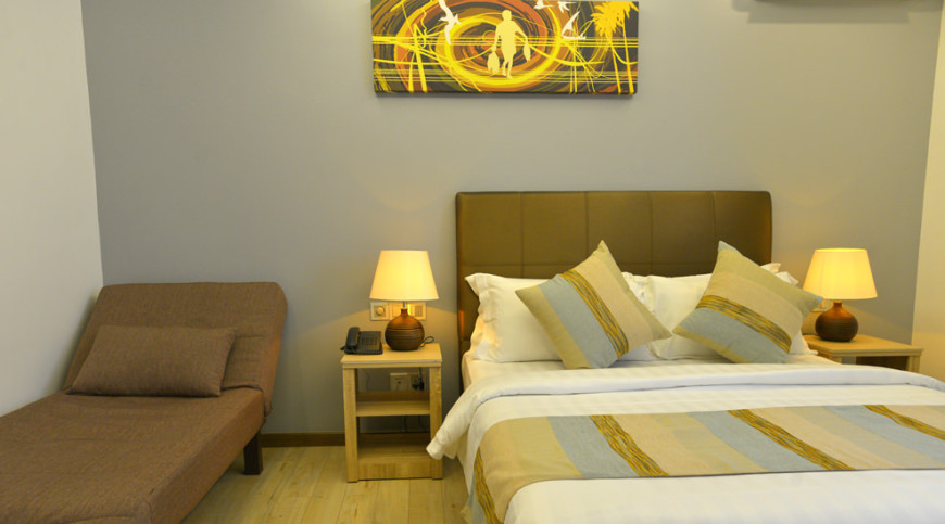 An exceptionally comfortable home away from home with desk and day bed/lounger for reading and relaxing.Room size : 15 sq.m Bed(s): Twin/Double