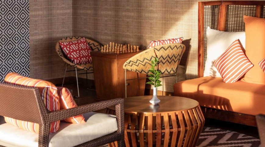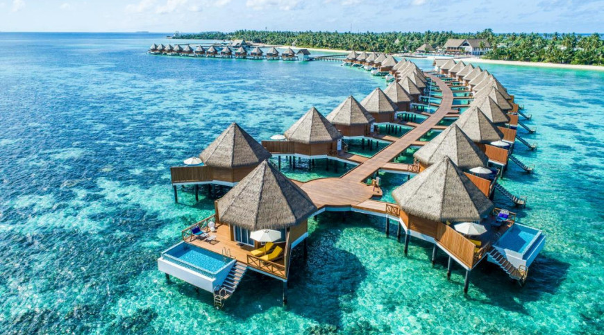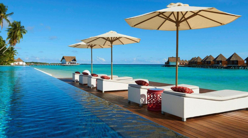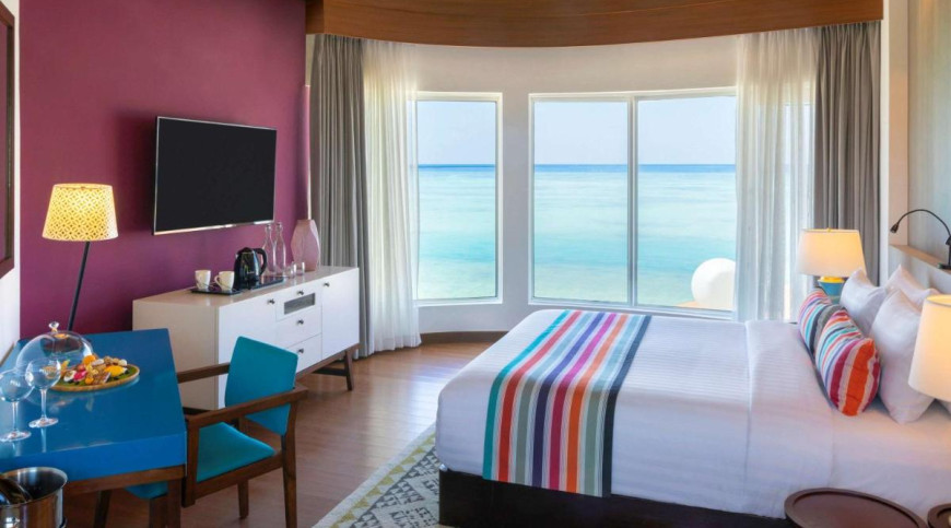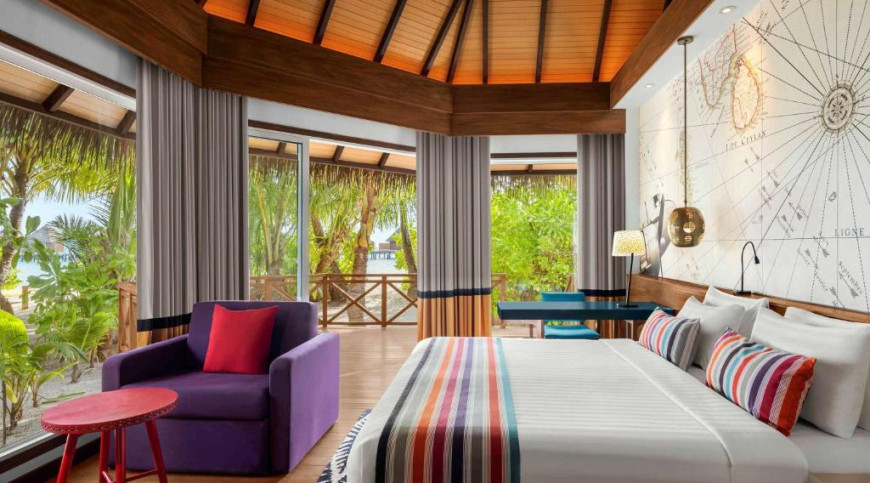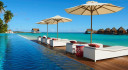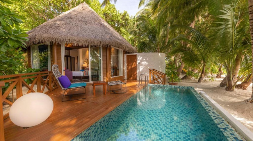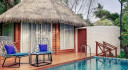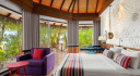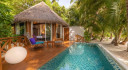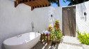 The Beach Villas are located along the white, sandy beach surrounded by tropical landscape under the shade of mature coconut trees.