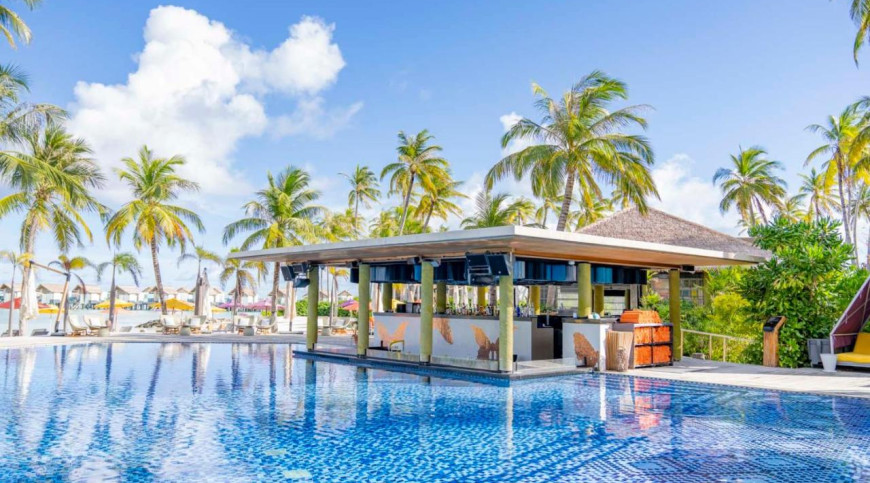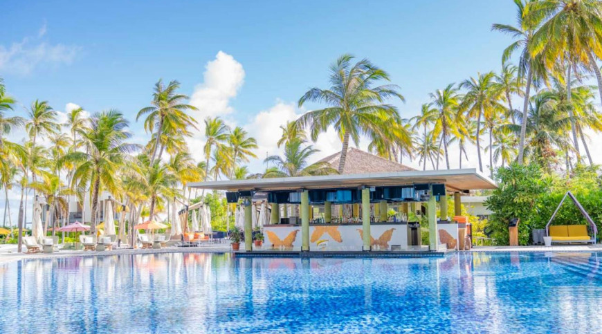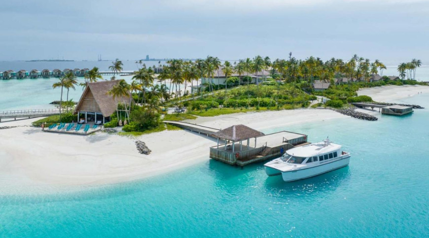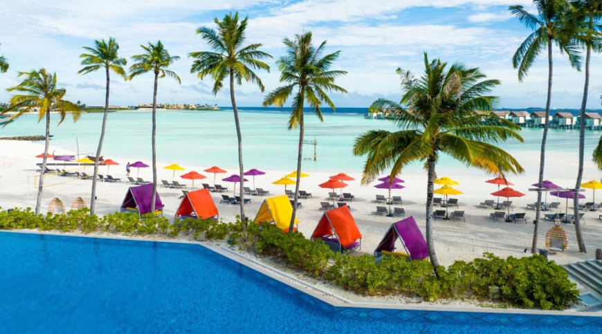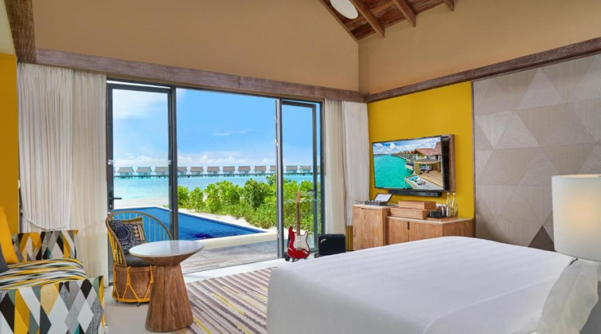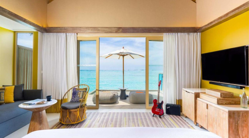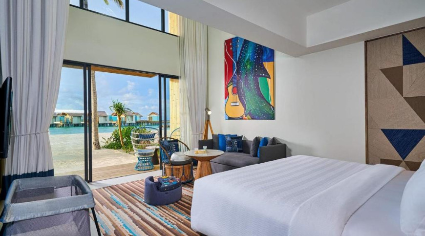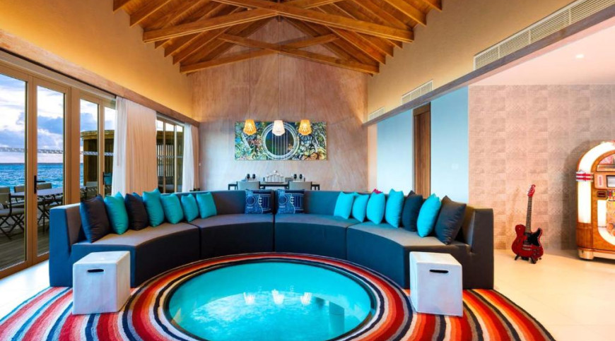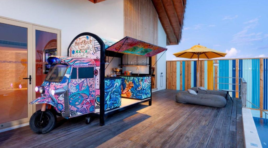Hard Rock Hotel Maldives is your all-access pass to the good life in Emboodhoo Lagoon, the first integrated resort destination in the Maldives. Only a 15-minute boat ride from the airport, we offer direct access to The Marina @ CROSSROADS—an entertainment island with dining, shopping, and more. Our Maldives beach resort takes inspiration from the tropical surroundings, incorporating authentic notes of regionally-inspired music memorabilia throughout.