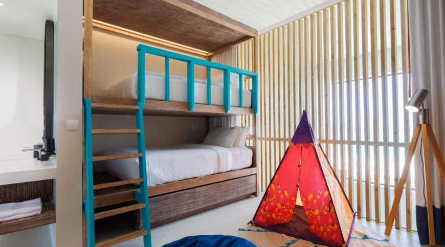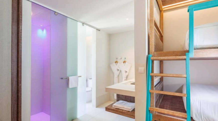 With an open plan concept, the Silver Family Suite Duplex features a master bedroom on the ground floor and two bunk beds on the top floor. Both with its own bathroom.