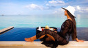 Featuring an infinity pool, the Platinum Overwater Pool Villa is located over the water includes a private terrace, sun loungers, and direct lagoon access.