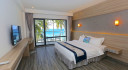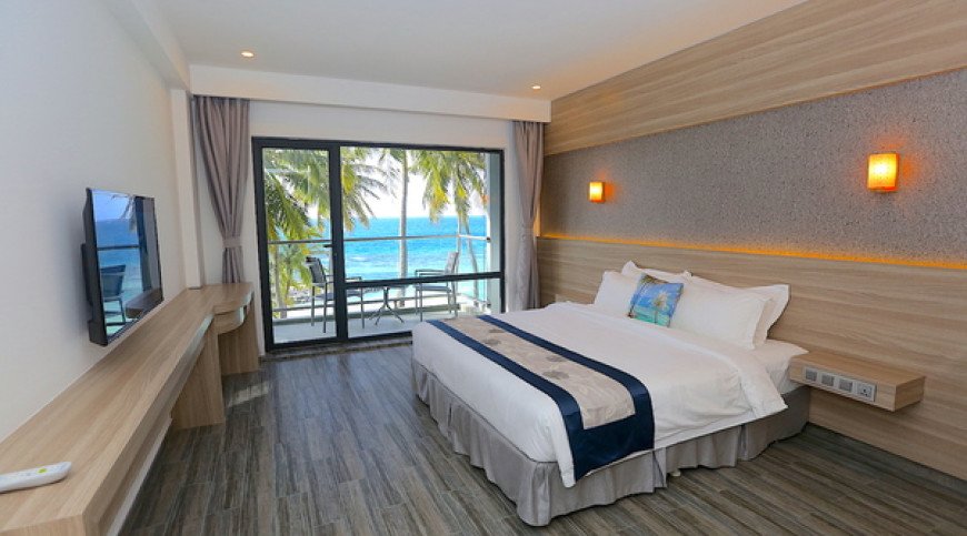 Kaani Grand Seaview is one of Maafushi’s finest Hotel, situated on the magnificent beachfront, directly opposite the Bikini Beach. The Hotel combines splendid service with quality accommodation, stylish cuisine and facilities for a perfect family holiday, business trip or relaxing getaway. For business travelers the hotel has a modern, well equipped conference room. The stunning four-star hotel offers homely comfort in its 56 spacious, en-suite bedrooms, with stunning sea-views. Enjoy a relaxing environment, sipping a drink while overlooking the ocean in the private balcony of your room. If you don't feel like outdoor exercise you can relax either in our Spa or if your feeling up to it, why not work out gently in the gym. After a relaxing dinner and a quiet drink in our Floating bar sleep should be no problem. Our young and friendly staff are here to book tours, welcome and serve you. It is about 25 kms from the International Airport and makes an ideal holiday for your family.