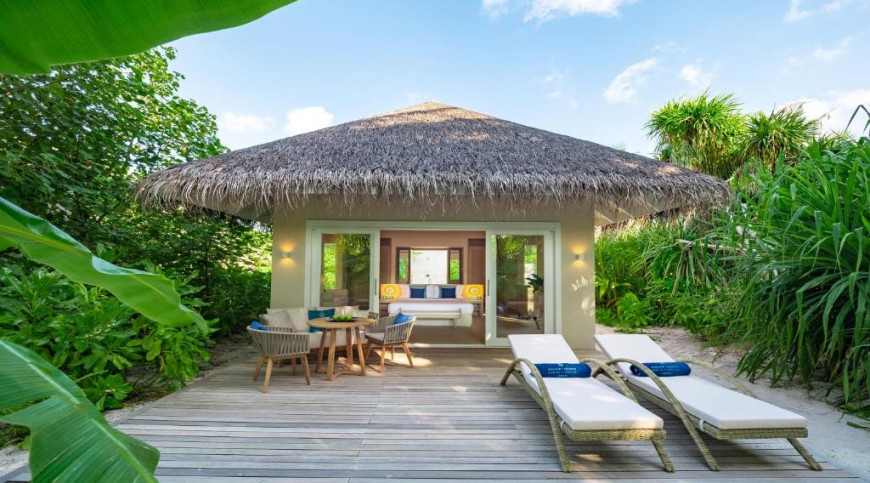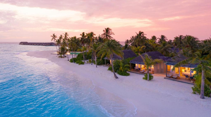 Dreamily resplendent on the island of Maagau in Dhaalu atoll, a 40-minute hop by seaplane from the capital, Malé, this remarkable resort is awash with tropical natural beauty. Our elegant furnished villas are surrounded by stunningly beautiful beaches, coconut palm trees, crystal clear waters and breathtaking sunset views.