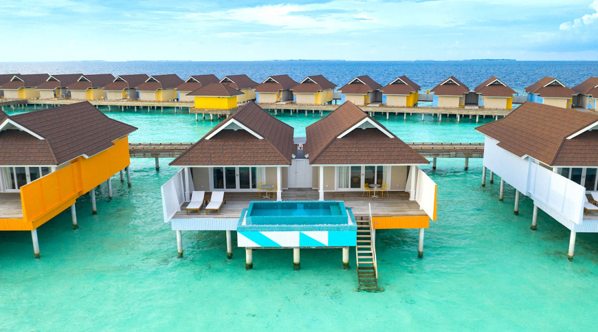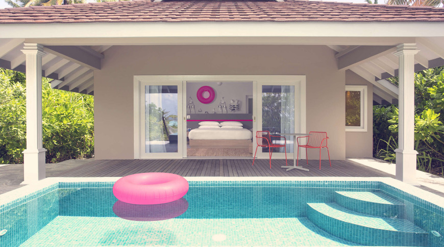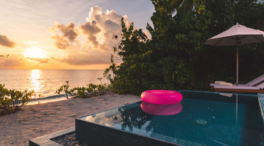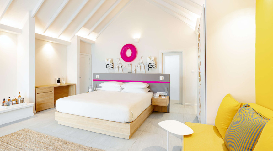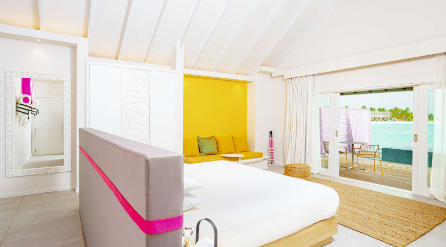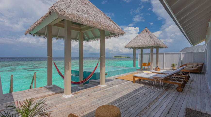 110 square meter overwater villa with king bed, one daybed, private deck with direct water access and plunge pool. Those looking for the iconic, overwater experiences (yes, like the ones you’ve seen on Instagram) will be right at home in the Lagoon Overwater Villa. With crystal clear, shallow water beneath your private deck (with a private plunge pool, too), direct access to our expansive lagoon, a fully stocked mini bar, and comfy bathrobes to hang out in all day, this villa is exactly what dreams are made of.