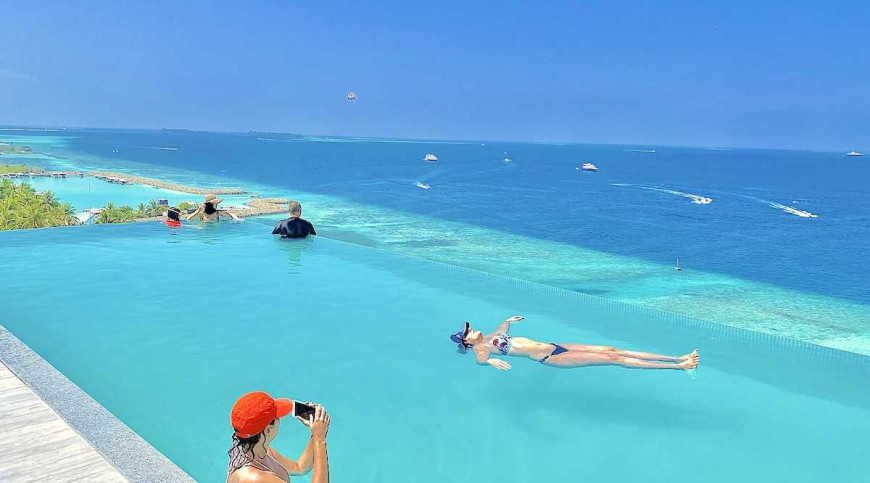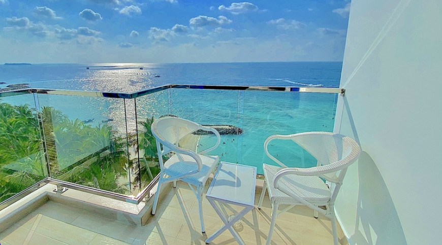 Kaani Palm Beach with the tallest Infinity Pool in Maldives situated on the magnificent beachfront, directly on the Bikini Beach in Maafushi Island.. The Hotel combines splendid service with quality accommodation, stylish cuisine and facilities for a perfect family holiday, business trip or relaxing getaway. The stunning four-star hotel offers homely comfort in its 105 spacious, en-suite bedrooms, with stunning sea-views. Enjoy a relaxing environment, sipping a drink while overlooking the ocean in the private balcony of your room or in the rooftop Infinite Cafe'. If you don't feel like outdoor exercise you can relax either in our Spa or if you feeling up to it, why not work out gently in the gym. Our young and friendly staff are here to book tours, welcome and serve you. It is about 25 kms from the International Airport and makes an ideal holiday for your family.