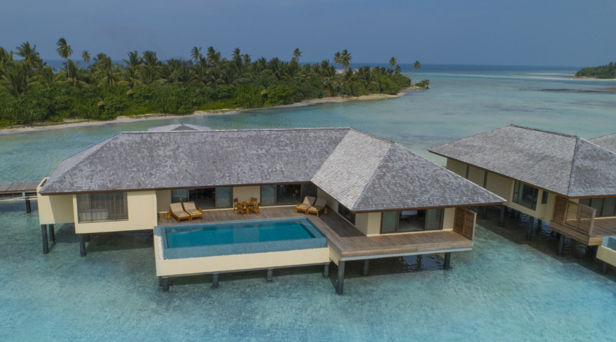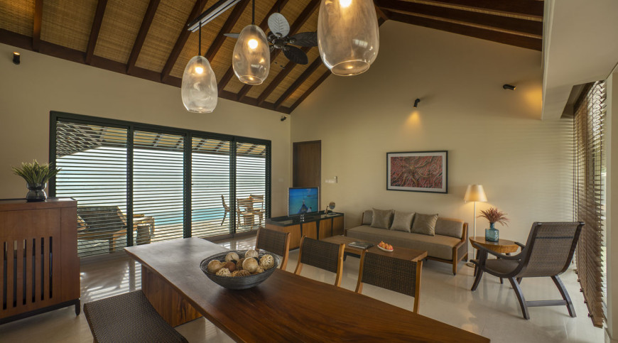 The one-bedroom Water Pool Villas float atop the clear turquoise lagoon, close enough for you to dip your toes in the water while basking in the panoramic ocean views. Slumber peacefully amid the relaxing sound of the waves. Feel at one with the ocean as you swim in your private pool and enjoy the sun’s warmth while lounging on the verandah. Other close-to-nature features include indoor and outdoor showers.