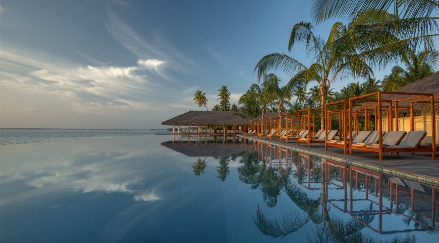 Feel the demands of the modern world melt away as this 173-villa resort transports you to a haven of unparalleled peace and relaxation, surrounded by nature’s unspoilt beauty. Here you can indulge in the purest of pleasures, lounging on pristine sun-kissed beaches, snorkelling among colourful coral reefs in clear lagoons, and diving with marine creatures in the ocean depths.