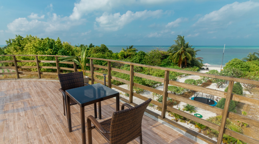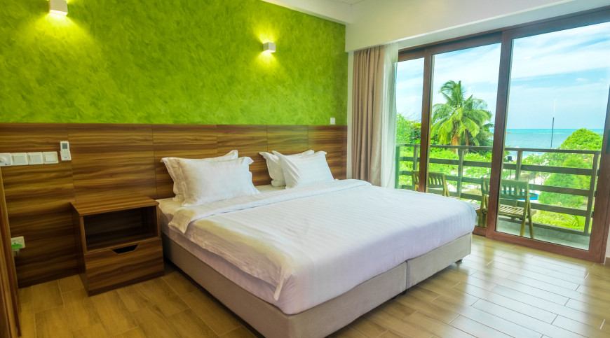 Our garden view rooms are located on the first & ground floor of the building. Furnishings include King/Twin bed & a seating area. The first floor rooms features private balconies with an expansive view of the island