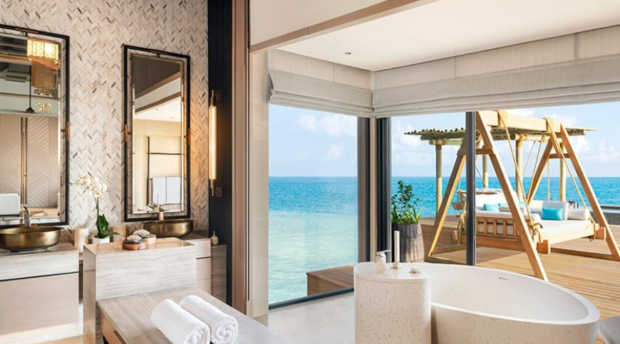 Discover life above the waves. These spacious villas feature an overwater terrace, including a private infinity pool.
