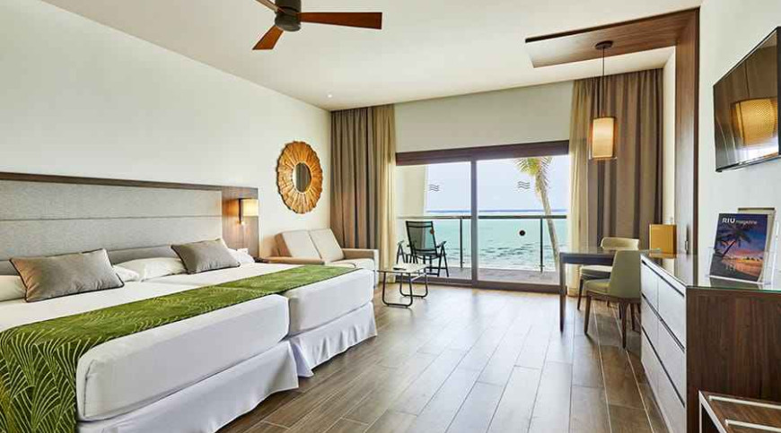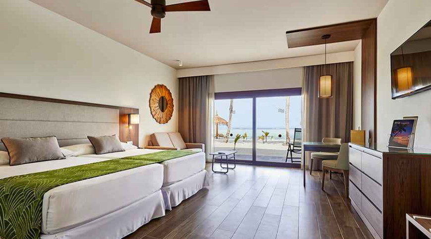 The junior suites at the Hotel Riu Palace Maldivas have the best facilities to make your stay unforgettable. These 40 m2 rooms have one king-size bed (200x200 cm) or two small double beds (125x200 cm), a sofa in the lounge area, satellite TV, air conditioning, a ceiling fan, drink dispensers, minibar, kettle and a balcony with impressive views of the sea.