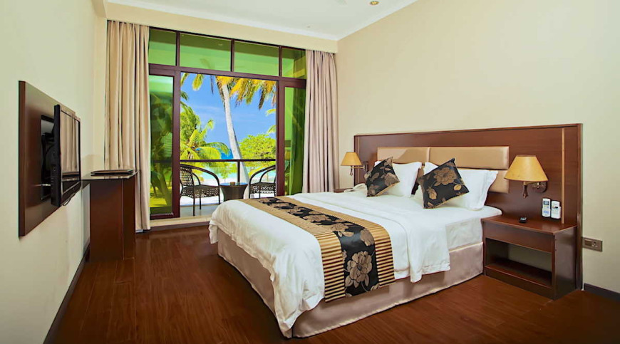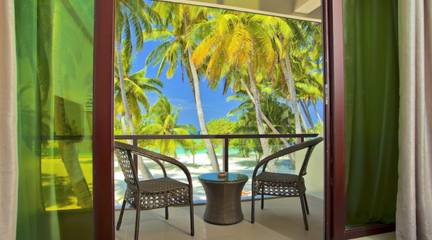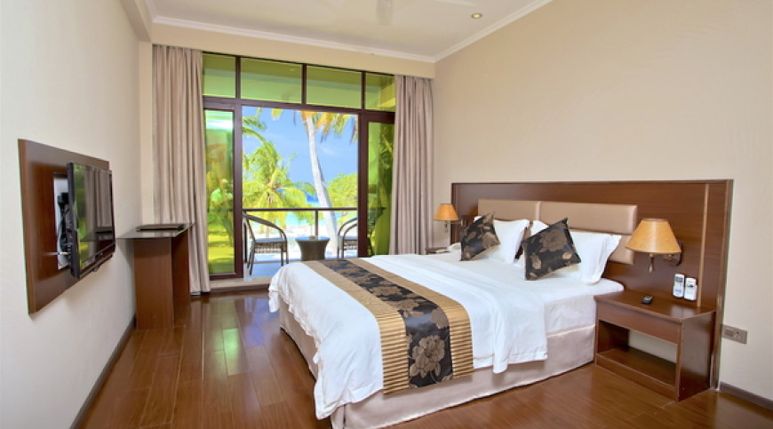 These Rooms offer a private balcony overlooking the Indian Ocean for colorful Maldivian sunsets. All Rooms have coffee table, chairs and a bathroom with rain Shower. Rooms are fully equipped with 32" Led TV with satellite channels, personal safe, mini bar, Air conditioning, hairdryer and Free WIFI.