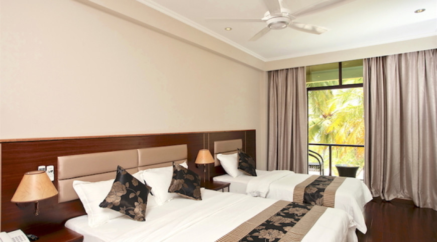 Families with a child can easily be accommodated as the room is with a Queen bed and a Single bed with a Balcony for a peaceful and relaxing ambiance and spacious bathroom with Rain Shower. Room facilities include 32" LED TV with Satellite channels, Air Conditioning, Mini-Bar, Hairdryer, Personal Safe and Coffee/Tea making facilities and Free WIFI.