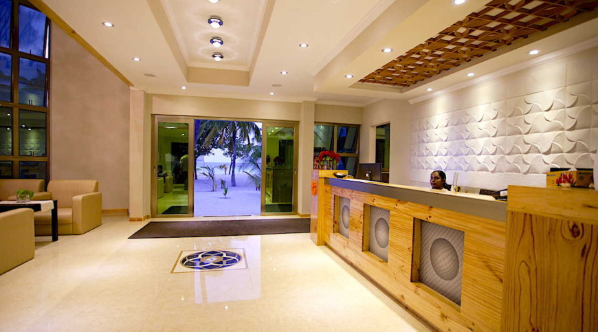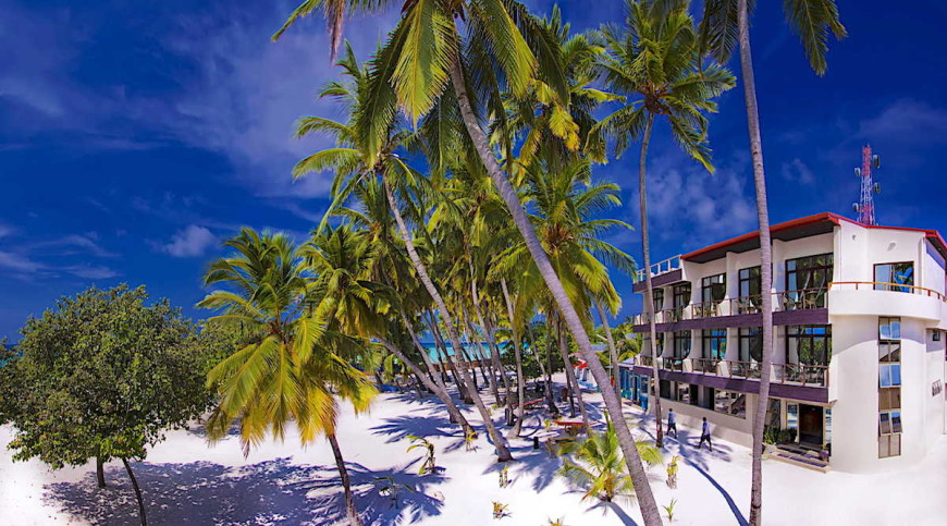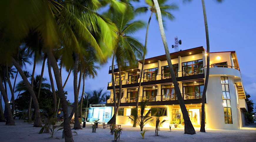 Kaani Beach Hotel located in Maafushi Island, a sunny beach getaway surrounded by coconut palm trees with Sea View rooms and private balcony. All rooms are Air Conditioned, with Hot water shower, Satellite Television, Wireless Internet, Mini Bar, Hair Dryer and Safe deposit. You will find a Restaurant serving Buffet Breakfast and Dinner and a rooftop open air terrace with loungers. There are variety of entertainments including Karaoke. You have the opportunity to do many activities similar to any luxury resort for a budget price in this Hotel including Excursions such as Fishing Trips, Snorkeling Trips, Visit to Sand banks, Trips to Picnic Islands, Dolphin watching and Water sports. A Floating Bar is available 2 minutes away from the hotel with free transfer. Maafushi Island is 25 km South of Male International Airport which takes 30 minutes by speed boat and 90 minutes by regular ferry.