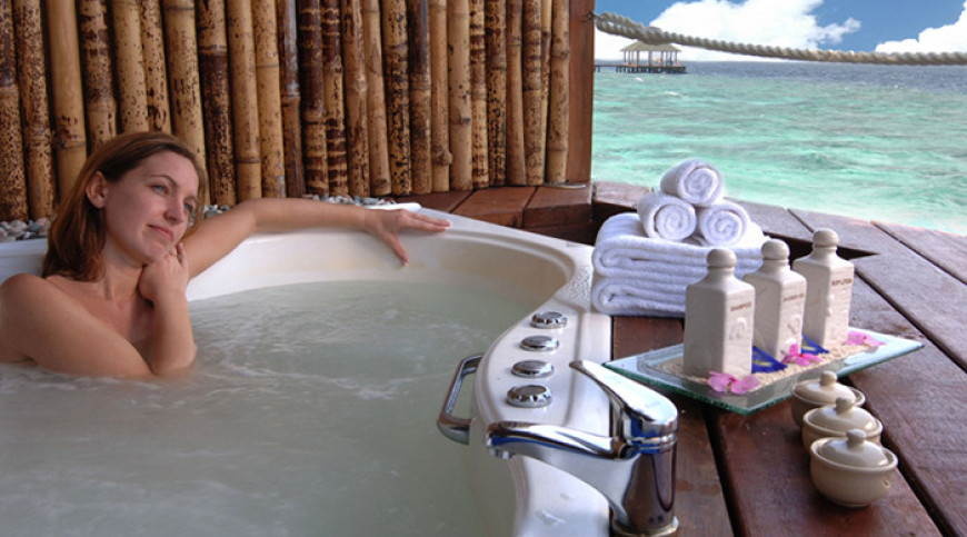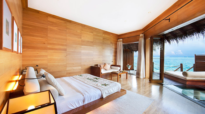 Elegantly appointed with luxurious wooden interiors, Adaaran Prestige Water Villas offer 20 luxurious Water Villas in the heart of paradise. Featuring a spacious sun deck which presents an ideal setting to bask in the sun for hours, enjoy glimpses into the life beneath the waves through the glass portal.