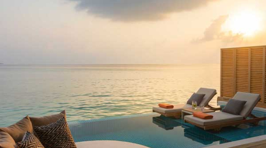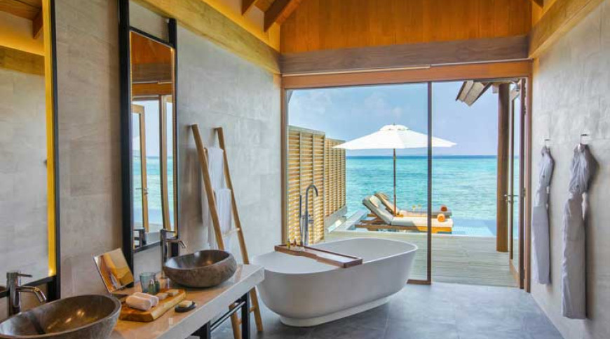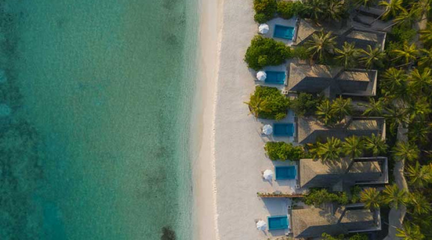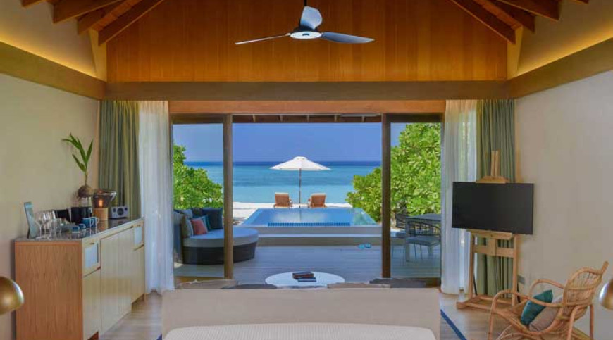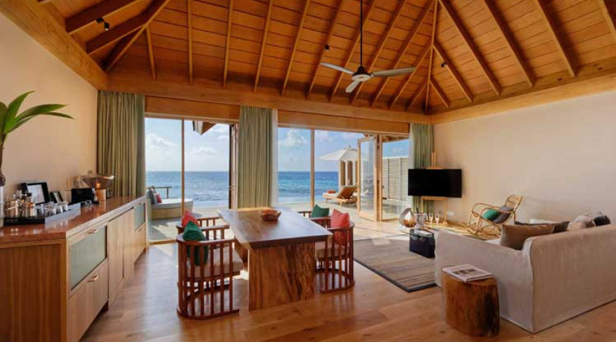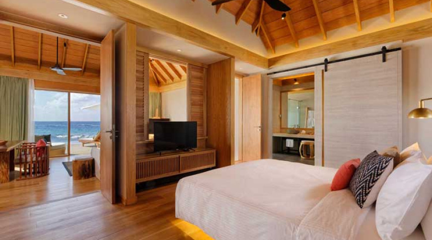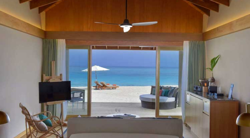 The Beach Villas feature an open-air bathroom and private furnished patio. Indulgently understated architecture with clean lines, muted wood tones and soft pastel accents. Access to a shaded timber deck framed by foliage and are also overlooking the sea.