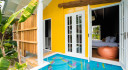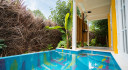 Over water with hammock, large swimming pool and a semi open ensuite bath