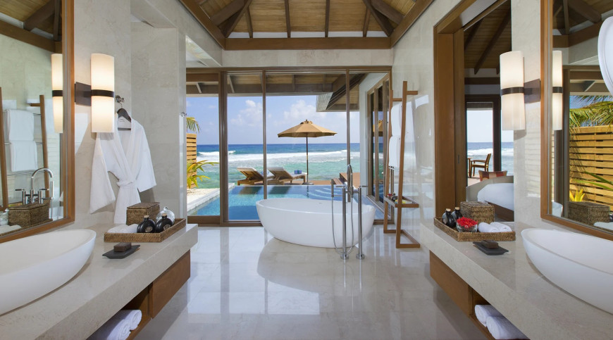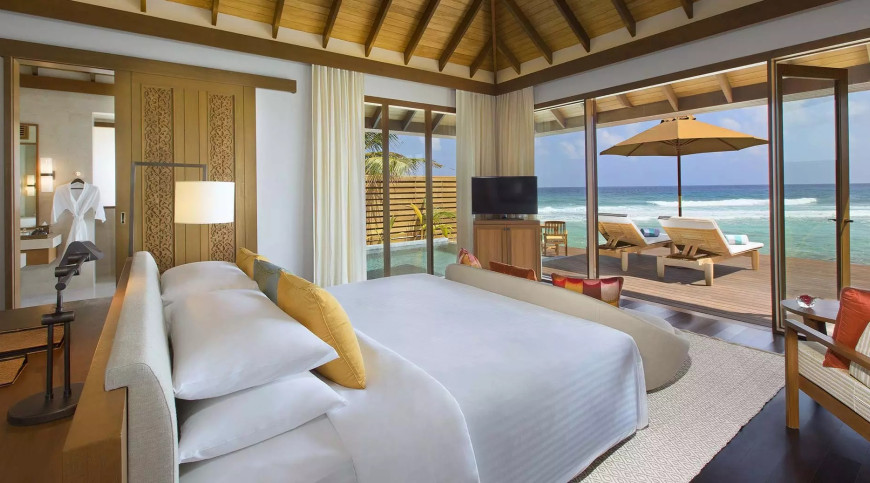 Over Water Bungalows features Maldives design, with cool hardwood floors, colourful indigenous fabrics and a traditional thatched roof. Wake up to views of the sparkling lagoon. Spend blissful days lazing on your outdoor daybed, or dive into the waters directly below, a natural coral bed home to brilliant schools of fish. Experience the Maldives with couples’ romance at our adults-only resort.