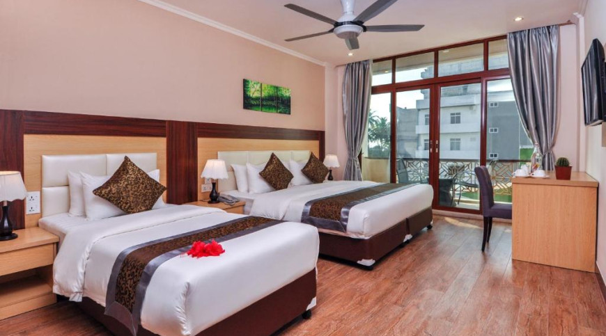 Triton Beach hotel & spa is located in Maafushi Island, less than a minute walk away from the tourist Beach, features a wellness spa, swimming pool, terrace, gym and a game area for guest to relax and enjoy their dream vacation. All rooms with balcony are Air conditioned, with Hot water shower, Hair Dryer, 32″ Flat screen TV, Wireless Internet, Mini Bar and Safe deposit. Triton Pool side restaurant in the ground floor serves European, Indian, Chinese and Maldivian Dishes.