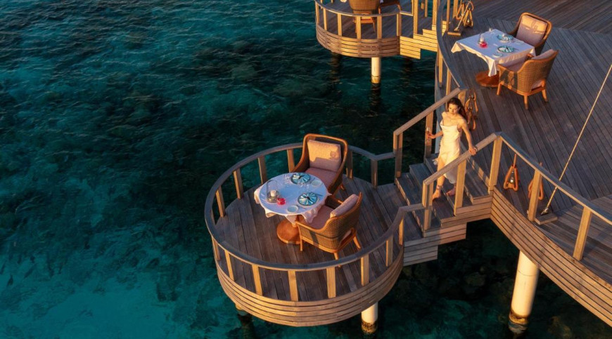 Embrace overwater life in your very own Maldives ocean villa in the middle of a turquoise lagoon. Here, in our ocean house Maldives, you exist free of time, with only sunset and dawn to mark the passing of days. A sundeck reaches out to the horizon, with steps that lead you down to the lagoon, while your own private infinity pool blends with the ocean’s blues. Revel in the intimate seclusion of a one-bedroom suite for two. Or connect with your clan in a residence of abundant space and privacy at our overwater villa in Maldives.