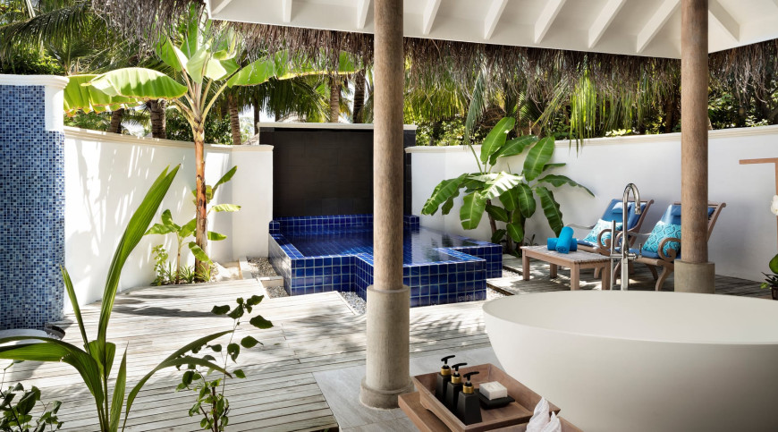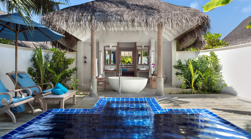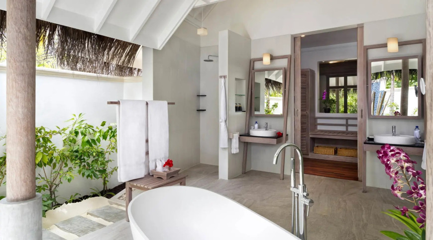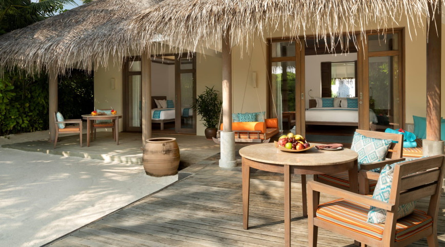 A combination of Sunset Beach Villa and Anantara Pool Villa side-by-side allows guests to share quality time in paradise with family or friends in two beautiful outer-connected villas. Two separate villa bedrooms feature a spacious open air bathroom and are connected via a the sundecks through double sided doors. 2 beach villas combined over 312 sqm.