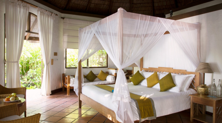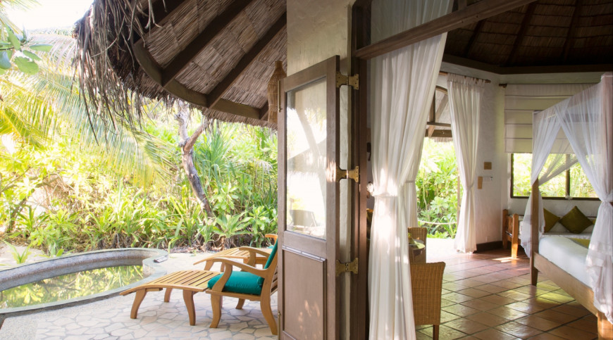 Our nine 87 square metre Ocean Front Villas line the fine white sand, facing the lagoon and the vast Indian Ocean beyond. From your private terrace at the front of the villa, nothing interrupts your view, and verdant tropical planting brings peaceful privacy.Inside, the purity of the traditional styling and layout is a breath of fresh Maldivian air. A high-pitched ceiling, luxurious king-size bed with net canopy, seating areas, writing desk, dressing table, wash basin and wardrobe provide all the comforts of home while the garden bathroom adds a genuine touch of real island living.