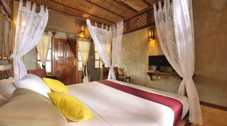 Our Maldivian-inspired bungalows sleep up to three guests and have private terraces with direct access to the white sandy beach.