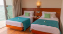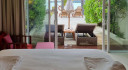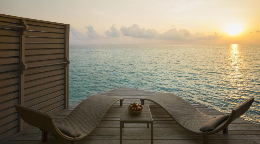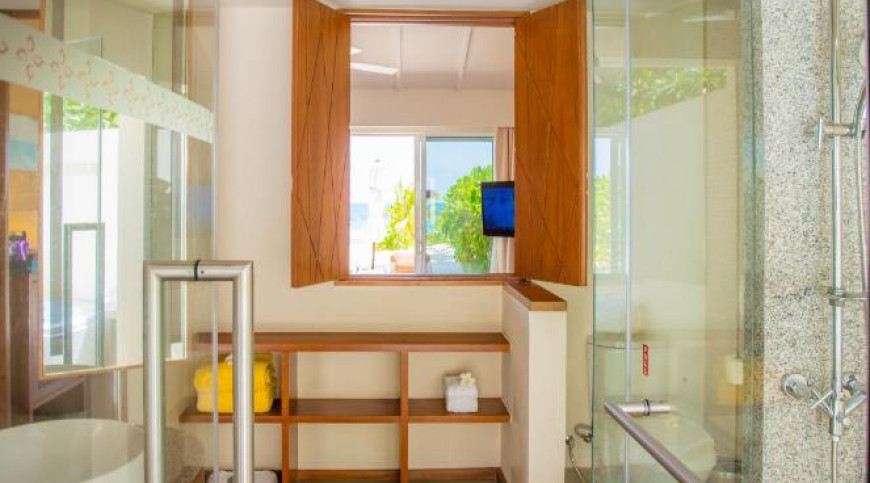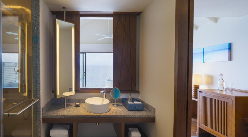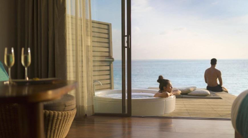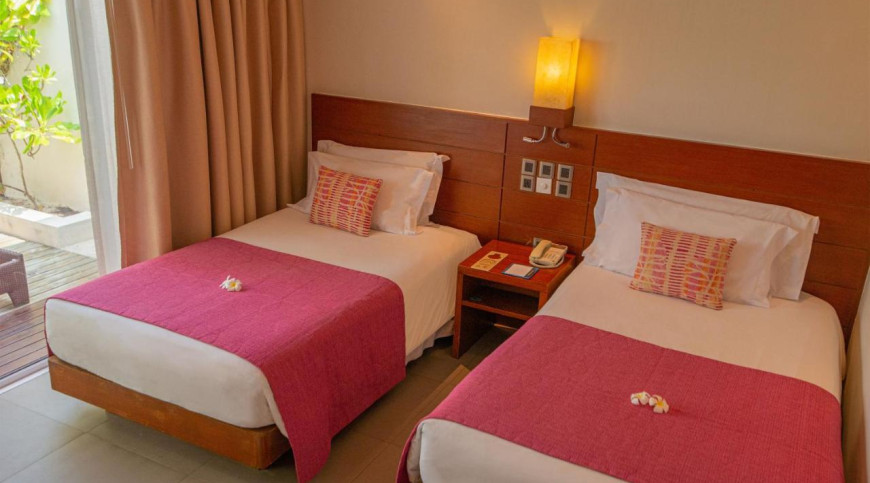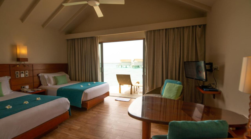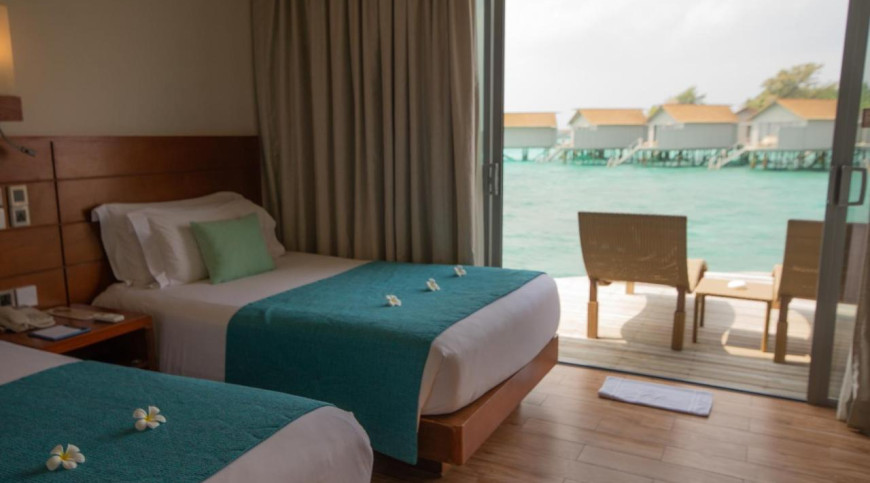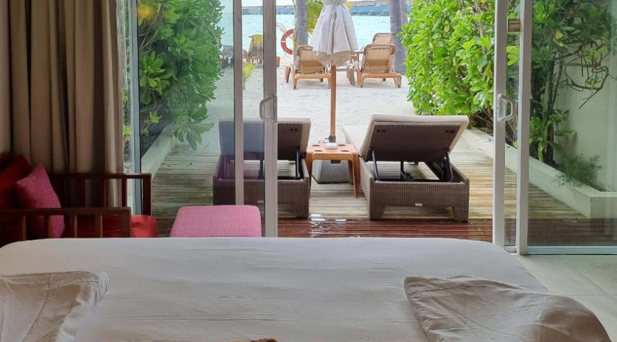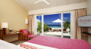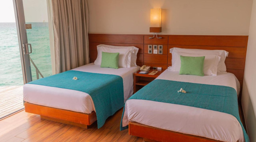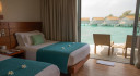 looking out across the lagoon, a bedroom with a choice of either a plush